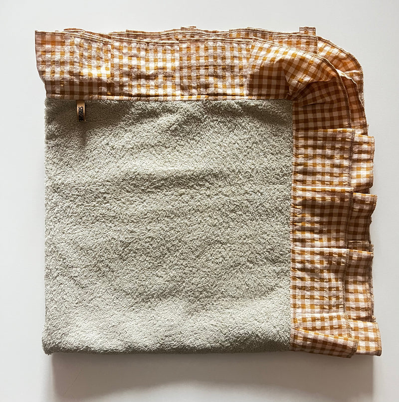 Telo in spugna con bordo in cotone adatto per il lettino spiaggia. Dimensione big 150 cm x 80 cm oltre il bordo. Dimensione small 100 cm x 80 cm oltre il bordo.